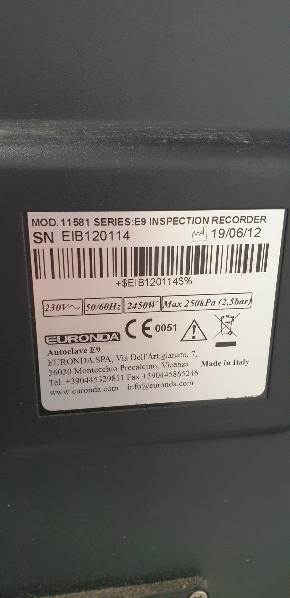 Autoclave dentaire pour stérilisation instruments , Euronda E9 24 litres année 2012 , 2443 cycles révisé et reconditionné. Expédition dans toute la France.